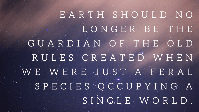 “It was those Feral creatures which created the cosmos traveler” I replied, ” Once we start degrading any rules which we have as old-fashioned then we are entering a slippery slope. The 90-year-old ban of Nuclear missiles has made sure that even if wars happen between colonies it doesn’t lead to radioactive materials settling all over the planet. Can we call this rule old-fashioned? Laws, rules and regulations are in place for a reason.”
