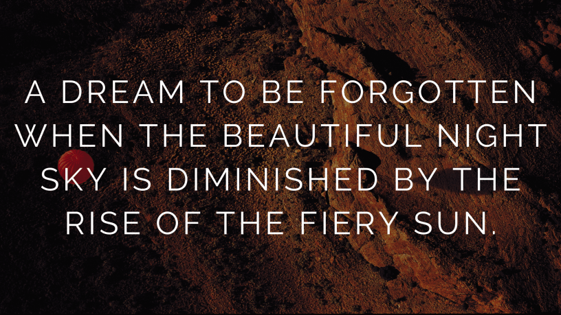 I have no hope now. The vagaries of youth have taken it’s toll on me. I am old. But the fire burns inside. It’s no more a dream to be had when I was about to be enveloped by unconsciousness in the darkness of the night. But a dream which lights the fuel which makes me go through the day. I have no choice but to act. Act on that subconscious impulse which hit me all that time ago whilst I looked up at the night sky.