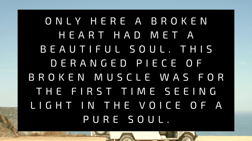 The first meeting happened as always. Guy met girl. Only here a broken heart had met a beautiful soul. This deranged piece of broken muscle was for the first time seeing light in the voice of a pure soul.
