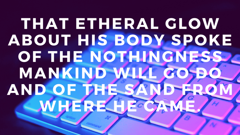 Nevertheless, I persisted, walking away for I didn’t want to break his eternal spell. That etheral glow about his body spoke of the nothingness mankind will go do and of the sand from where he came.