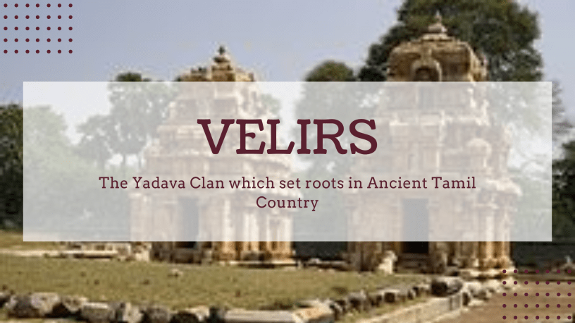 According to Tholkappiyam ( one of the oldest Tamil works), the Velirs had come from Dwarka ( the legendary city in which Krishna lived and was destroyed towards the end of Mahabaratha) under sage Agastya ( Father of Tamil Language) and were part of the Yadava clan. This means that Velirs had migrated from North of the Vindhyas to set roots in the Tamil Country