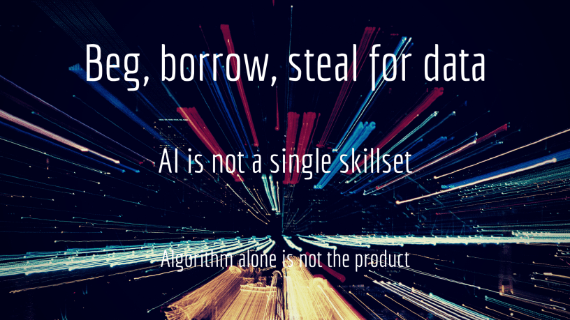 Just because we have a couple of Algorithms which have high accuracy dosent mean we have a platform business. The obession with platforms within AI is bordering on the insane. Unless you are Amazon or Microsoft don’t attempt that. Don’t be that person and make sure your stakeholders are not people as well.