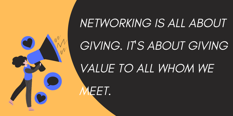 But then networking is exactly opposite that. It’s all about giving. It’s about giving value to all whom we meet and in the era of social media to all our followers as well.